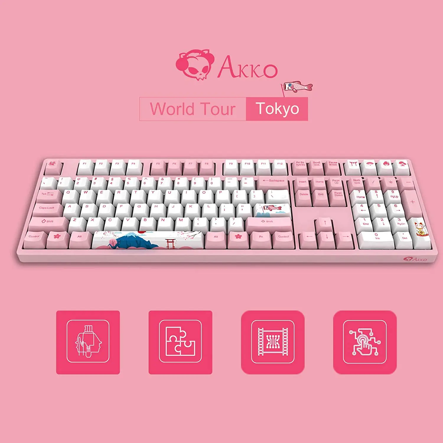 AKKO Tokyo Sakura 3108 Mechanical Keyboard Wired 108 Keys PBT Dye-Sub Keycaps Cherry MX TTC Switch Pink Blue Orange Game